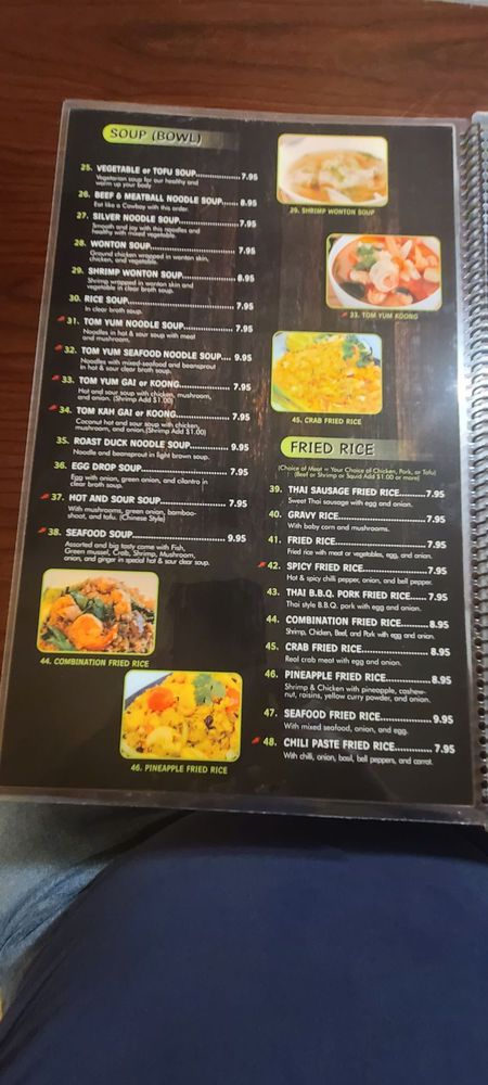 The menu features tantalizing offerings like the Spicy Basil Big Plate, customizable with chicken, pork, or shrimp, and the crowd-favorite Pineapple Fried Rice, celebrated for its huge portions and rich flavors. For soup lovers, the Tom Kah and Tom Yum blends a spicy kick with comforting warmth. Don’t miss the Spicy Eggplant and crispy Fried Calamari, praised by diners for their exquisite taste.